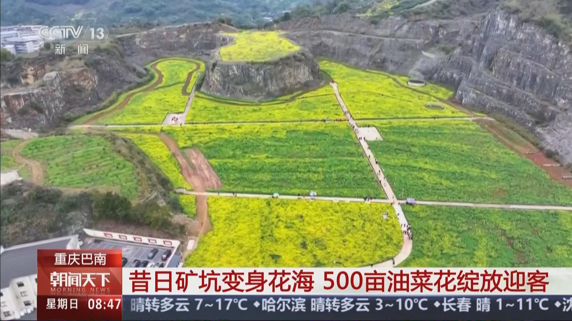 央视《朝闻天下》聚焦我区昔日矿坑变花海 500亩油菜花绽放迎春